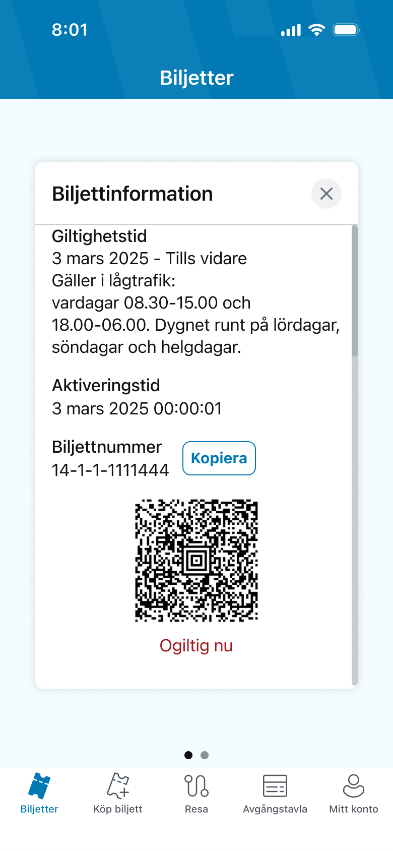 Nedan hittar du olika bilder på hur biljetten ser ut i To Go. Högerklicka på en bild och tryck "Spara bild som" ifall du önskar använda bilden i ett mejl eller utbildningsmaterial.